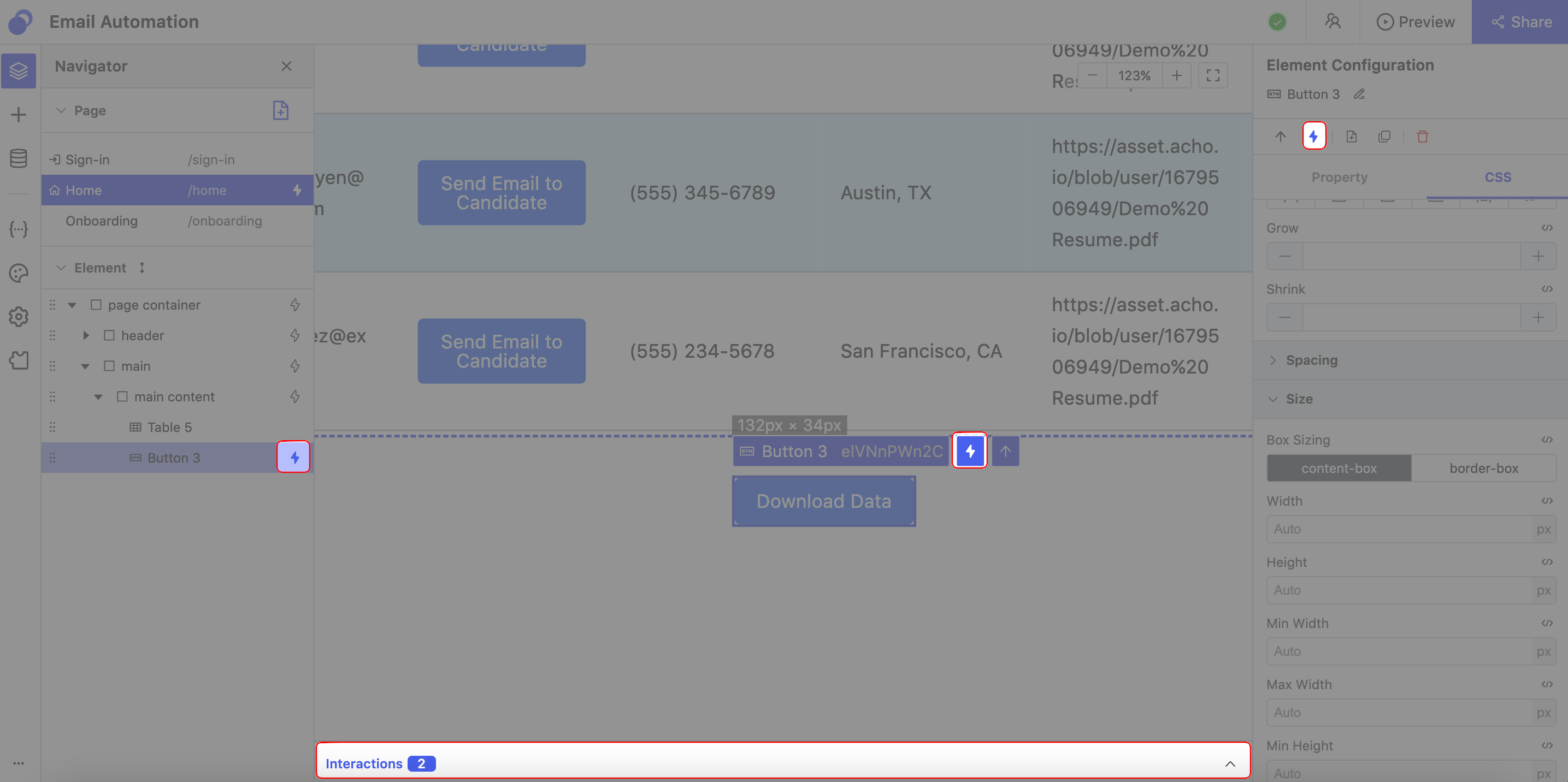 Interactions are the building blocks for your web app’s functionality. They create communication between your data, elements, scripts, and web app, allowing you to build an interactive interface.