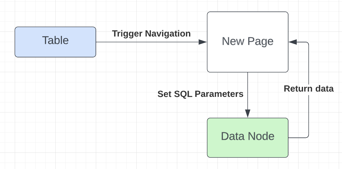 When a user clicks on a table, a navigation action to the new, dynamic page is triggered. The navigation event will pass in a parameter, such as an `id`, to the dynamic page.